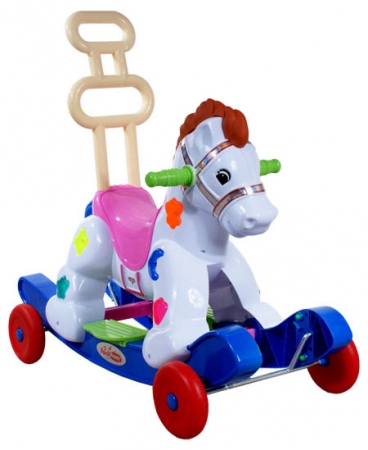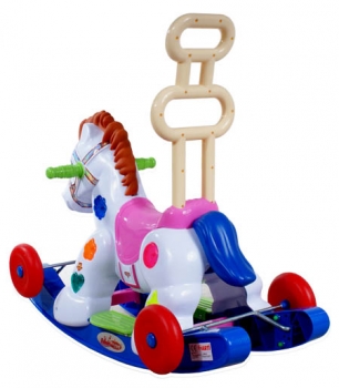 Konik na biegunach ARTI A2078, wykonany z materiałów najwyższej jakości. Dzięki rozkładanym kółkom posiada funkcję jeździka. Konik posiada wygodne rączki, oraz bezpieczne oparcie. FUNKCJE: - Bieguny do bujania - Rozkładane kółka - Wygodne uchwyty dla dziecka - 2 odgłosy konika - Podświetlana grzywa - Świecące oczy - Podnóżki na biegunach - 4 melodyjki - Bezpieczne oparcie - Świecące boki - Baterie w zestawie - Wkrętak do montażu w zestawie WYMIARY: szer 40cm X dłu 73cm X wys 70cm Dopuszczalna waga dziecka 18kg Dla dzieci od 18 do 36 miesięcy |