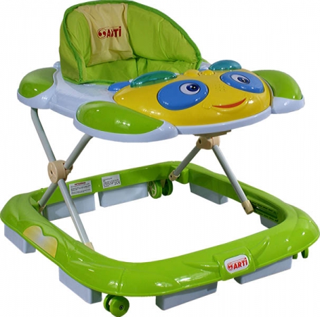 Walker ARTI Beetle 10F is height adjustable suspension that allows easily adjust the height for the child. Walker is equipped with flashing lights, the music box, and silicone to protect against collision blocking an obstacle, or sliding down the stair. Made from the highest quality materials for maximum comfort and safety of your child. For children with a maximum weight of 12kg. Functions - Swivel front wheels - Adjustable height - Textile comfortable seat - Buttons with tunes on your desktop - Silicone block underneath to protect against: collision on the obstacle (eg block) running off down the stairs. |