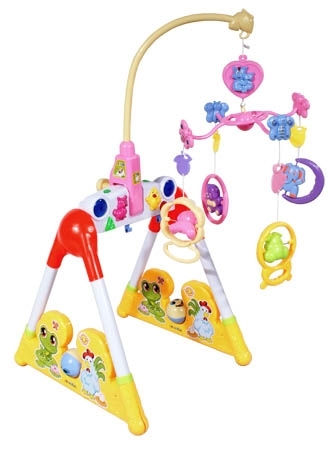 Stand Fitness + musical mobile ML 668-86. Great develops manual dexterity and imagination of a child, entertaining them suspended three rattles, and carousel music box and four rattles. Weight of stand: 3.10 Carton weight: 3.30 Dimensions: L 81 x W 49 x H 10 (cm) Functions Three hanging rattles Music Box with four rattles Two rotating ball rattles in the base For the youngest children 0 + |