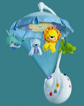 Superb musical mobile projector DREAM company ARTI. It has three types of sounds: - Sounds of nature - melodies - The sound of heartbeats Musical mobile is equipped with four plush stuffed animals and a projector that displays on the roof carousel pictures Musical mobile equipped with remote control |