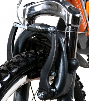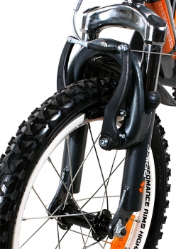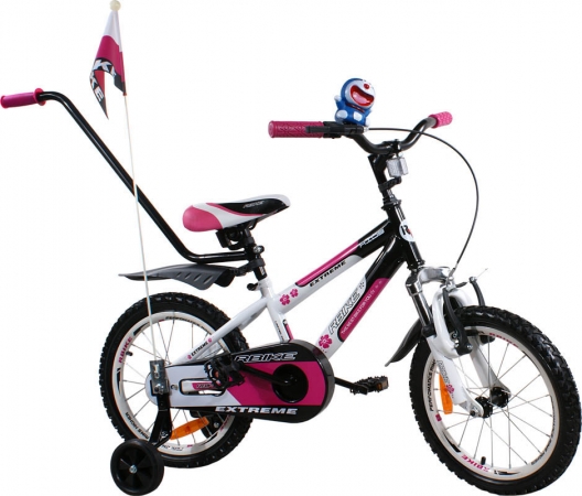 An attractive bike BMX RBike for children which has 16 inch wheels. The bike has a solid frame, front brake v-brake, sport fenders, front shock absorber, full chain cover, and a footer. Additional wheels providing stability and a pole, which makes it a perfect bike for learning to ride. Designed for children from 5 to 7 years. Functions: adjustable front handle V-brake pole for the parent with height adjustment rear pedal brake full covering for the chain soft, rubber handles on the handlebar - comfortable adjustable height of the seat adjustable height of the handlebar soft saddle pedals with reflectors wheels with reflectors sport mudguard durable, strong and solid structure safe, strong side wheels for learning to ride very high quality of workmanship beautiful design made in technology that is safe for children, the paints do not contain dangerous substances |