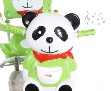 Lovely, durable, made of height quality materials tricycle bike Arti Panda-2. Sturdy frame, removable sunshield and adjustable seat. These features distinguish our product. Music box and basket for toys makes tricycle look very attractive for kids, while removable bumper bar and adjustable safety pan are designed for parents. Easy to install. - Removable sunshield - Safety pan with adjustable height - Removable footrest - Removable bumper bar - Sturdy basket for toys - music box - Soft, Sturdy, made of foam material wheels |