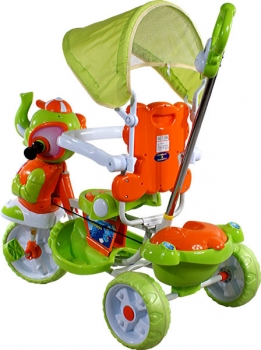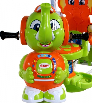 Amazing color, made of high quality raw material tricycle ARTI Elephant The bike has a solid contoured frame. In addition, the equipment canopy protects baby from the sun and guide exercise bike control by the parent. Easy installation and adjustment. Extensive range of accessories: - Removable sunshield, - For the parent, - Removable footrest, - Removable bumper bar, - Hinged barrier makes getting to a bicycle, - Get out of the back of the cart, - Music box - Soft foam and wide wheels. Maximum load 25 kg |