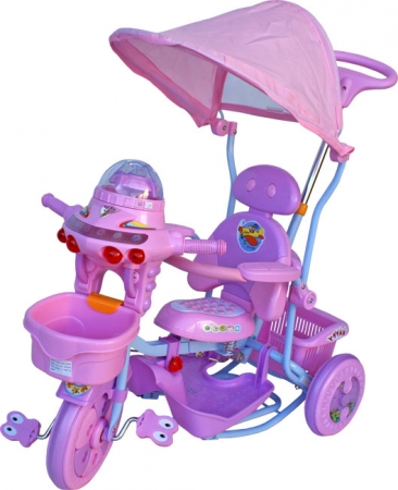 A multifunctional three-wheeled bike with a hood. Designed for children up to 3 years. Maximum permissible load of the bike is 25 kg. Accessories steering pole folding sun hood basket in the back and front adjustable barrier footrest for feet seat on springs with backrest flashing, music and talking function |