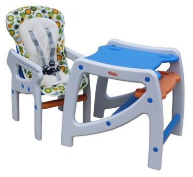 Krzesełko Arti Swing rozkładane na stolik i krzesełko. Wykonane z materiałów najwyższej jakości. Krzesełko posiada oddychającą odporną na wilgoć tapicerkę oraz dwuczęściowy szeroki blat dzięki czemu łatwo utrzymać go w czystości. Krzesełko dodatkowo dzięki możliwości rozłożenia na stolik i krzesełko może towarzyszyć dziecku podczas zabawy przez długie lata. Przeznaczone dla dzieci od 6 miesiąca do 6 lat. Maksymalne dopuszczalne obciążenie 18 kg. Funkcje: - 3 stopniowa regulacja wysunięcia blatu, - 3 stopniowa regulacja oparcia, - rozkładane na stolik i krzesełko, - dwuczęściowy blat, - 5 - punktowe pasy bezpieczeństwa, - trzpień zabezpieczający przed wysunięciem dziecka. |