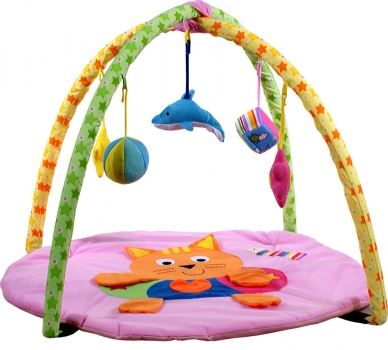 Mata edukacyjna ARTI Kitty Pink Ta śliczna kolorowa mata edukacyjna posiada bajecznie kolorowe grzechotki w postaci piłeczki i kostki, pluszowe piszczące gwiazdki, delfinka oraz szeleszczące detale, które znakomicie rozwijają zmysł dotyku oraz wrodzoną ciekawość maluszka . WYMIARY: wys. 60cm średnica 84cm waga brutto 1,20kg Dla najmłodszych dzieci 0+ |