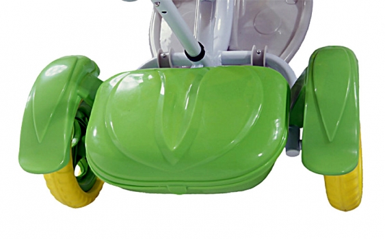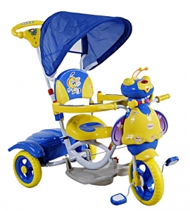 Rewelacyjny wykonany z wysokiej jakości surowców rowerek trójkołowy ARTI Pszczółka-4 new JY-13. Rowerek posiada solidną profilowaną ramę. Dodatkowo wyposażyliśmy go w pojemny, zamykany kosz na zabawki oraz ozdobne błotniki, jak również daszek chroniący dziecko przed słońcem oraz regulowany prowadnik do sterowania rowerkiem przez rodzica. Łatwy w montażu. Bogate wyposażenie: - zdejmowany daszek przeciwsłoneczny, - prowadnik, - zdejmowany podnóżek, - rozpinana barierka ułatwia wsiadanie do rowerka, - zamykany koszyk/pojemnik z tyłu - pozytywka, - błotniki dodajace uroku, - miękkie pianowe, grube, solidne, kółka. Maksymalne dopuszczalne obciążenie 25 kg |