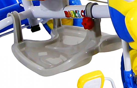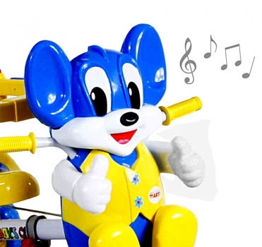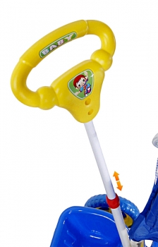 Rewelacyjny, kolorowy, wykonany z wysokiej jakości surowców rowerek trójkołowy Myszka-2. Rowerek posiada solidną profilowaną ramę oraz odpinaną barierkę ochronną. Dodatkowo w wyposażeniu daszek chroniący dziecko przed słońcem oraz regulowany prowadnik do sterowania rowerkiem przez rodzica. Łatwość montażu i regulacji. Bogate wyposażenie: - zdejmowany daszek przeciwsłoneczny, - prowadnik z regulowaną wysokością, - zdejmowany podnóżek, - regulowana, zdejmowana barierka ochronna, - rozpinana barierka ułatwia wsiadanie do rowerka, - koszyk z tyłu, - pozytywka, - miękkie pianowe kółka. Maksymalne dopuszczalne obciążenie 25 kg |