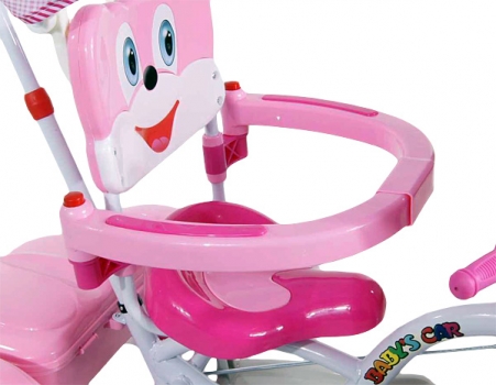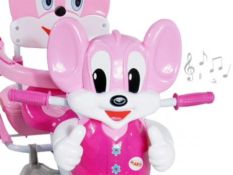 Rewelacyjny wykonany z wysokiej jakości surowców rowerek trójkołowy ARTI Myszka-4. Rowerek posiada solidną profilowaną ramę. Dodatkowo wyposażyliśmy go w pojemny, zamykany kosz na zabawki oraz ozdobne błotniki, jak również daszek chroniący dziecko przed słońcem oraz regulowany prowadnik do sterowania rowerkiem przez rodzica. Łatwy w montażu. Bogate wyposażenie: - zdejmowany daszek przeciwsłoneczny, - prowadnik z regulowaną wysokością, - zdejmowany podnóżek, - regulowana, zdejmowana barierka ochronna, - rozpinana barierka ułatwia wsiadanie do rowerka, - zamykany koszyk/pojemnik z tyłu, - błotniki dodające uroku - pozytywka, - miękkie piankowe kółka. Maksymalne dopuszczalne obciążenie 25 kg |