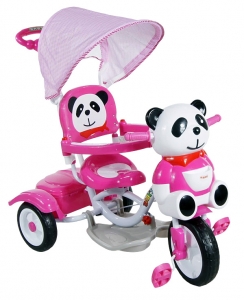 Rewelacyjny wykonany z wysokiej jakości surowców rowerek trójkołowy Panda-5. Rowerek posiada solidną profilowaną ramę, z zamontowanym zamykanym pojemnikiem na zabawki z tyłu. Dodaliśmy możliwość regulacji odległości siodełka od kierownicy, a solidne piankowe kółka jeszcze bardziej zwiększają stabilność rowerka. W zestawie daszek chroniący dziecko przed słońcem oraz regulowany prowadnik do sterowania rowerkiem przez rodzica. Łatwy w montażu i regulacji. Bogate wyposażenie: - zdejmowany daszek przeciwsłoneczny, - prowadnik z regulowaną wysokością, - regulowana odleglosc siodełka od kierownicy, - zdejmowany podnóżek, - regulowana, zdejmowana barierka ochronna, - rozpinana barierka ułatwia wsiadanie do rowerka, - zamykany pojemnik na zabawki z tyłu, - pozytywka, - miękkie pianowe, grube, solidne, kółka. Maksymalne dopuszczalne obciążenie 25 kg |