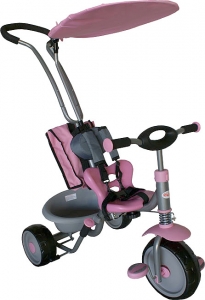 Solidny i bezpieczny rowerek Arti Moby Landers Deluxe o nowoczesnej stylistyce. Amortyzowany widelec z przodu oraz miękkie oparcie zapewniają maksymalny komfort podróżowania. Pięciopunktowe pasy zapewniają pewne trzymanie dziecka w siedzisku. Rowerek posiada ponadto mechanizm umożliwiający swobodne obkręcanie się pedałków podczas prowadzenia rowerka przez rodziców. Dopuszczalne maksymalne obciążenie 25 kg. Bogate wyposażenie: - Prowadnik umożliwiający sterowanie rowerkiem, - Daszek chroniący przed słońcem, - Odczepiana torebka, - Koło przednie z możliwością odłączenia napędu na pedałki, - 5 punktowe pasy bezpieczeństwa, - Hamulec ręczny na tylną oś, - Amortyzowany widelec, - Blokada kierownicy, - Uchwyt na środku kierownicy do noszenia rowerka, - Koszyk z tyłu (maksymalne obciążenie 3 kg), - Regulacja odległości siedziska od kierownicy 3 stopnie, - Miękkie oparcie, - Miękkie rączki oraz uchwyt prowadnika, - Ciche piankowe koła przód (średnica 24 cm), tył (średnica 17 cm). |
