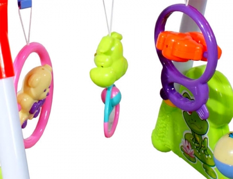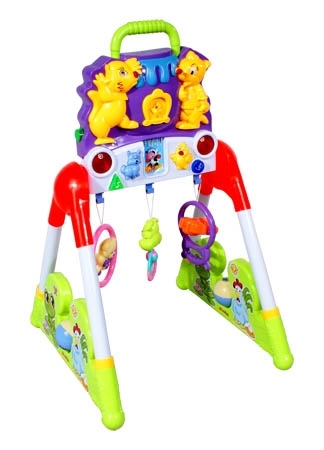Stojak Fitness 668-97 ML. Zabawi dziecko trzema zawieszonymi grzechotkami, oraz dwoma światełkami migajacymi podczas odtwarzania melodyjek i odgłosów zwierząt. Waga stojaka: 2,60 Waga kartonu: 2,80 Wymiary: dł. 67,5 x szer. 49 x wys. 10 (cm) Funkcje: Trzy wiszace grzechotki Dwa światełka Dwa odgłosy zwierząt Dwie rytmiczne melodie Przycisk z melodyjką w górnej części zabawki Rączka do trzymania Dwie obrotowe piłki grzechotki w podstawie Dla najmłodszych dzieci 0+ |