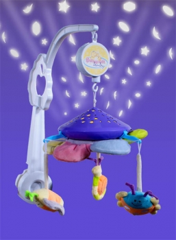 Wspaniała karuzelka ARTI Starlight z projektorem. Karuzelka doczepiana do łóżeczka za pomocą pewnego uchwytu, wyposażona jest w projetror, który wyświetla na suficie gwiazdki i księżyce, a także szeleszczące listki, bezpieczne lusterka, oraz trzy pluszowe maskotki i nakręcaną pozytywkę. Pozytywka wprawia w ruch maskotki, posiada ona również blokadę, dzięki której możemy ją wyłączyć w dowolnym momencie. Waga karuzelki: 0,7 kg Waga kartonu: 1 kg Dla najmłodszych dzieci 0+ |