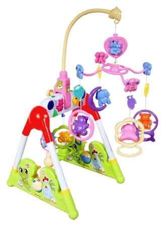 Stojak Fitness + Karuzelka 668-85 ML. Wspaniale rozwija zdolności manualne oraz wyobraźnię dziecka, zabawiając je trzema zawieszonymi grzechotkami, oraz karuzelą z pozytywką i czterema grzechotkami. Waga stojaka: 3,10 Waga kartonu: 3,30 Wymiary: dł. 81 x szer. 49 x wys. 10 (cm) Funkcje: Trzy wiszace grzechotki Pozytywka z czterema grzechotkami Dwie obrotowe piłki grzechotki w podstawie Wypukłe wizerunki zwierząt w podstawie Dla najmłodszych dzieci 0+ |