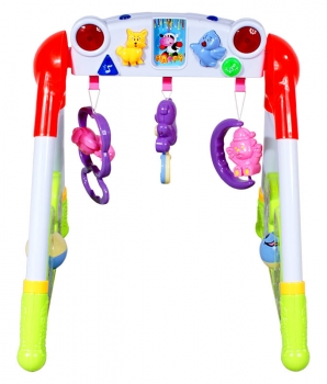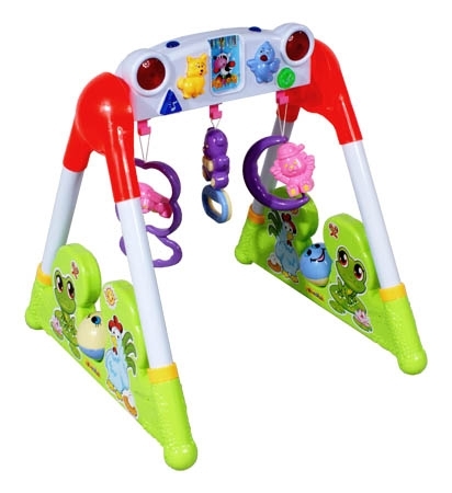 Stojak Fitness 668-109. Wspaniale rozwija zdolności manualne oraz wyobraźnię dziecka, zabawiając je trzema zawieszonymi grzechotkami, oraz dwoma piłkami grzechotkami umieszczonymi w podstawie. Waga stojaka: 2,20 Waga kartonu: 2,35 Wymiary: dł. 55 x szer. 49 x wys. 9,5 (cm) Funkcje: Trzy wiszace grzechotki Dwie obrotowe piłki grzechotki w podstawie Dla najmłodszych dzieci 0+ |