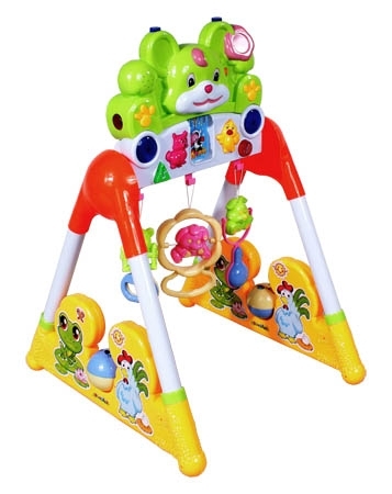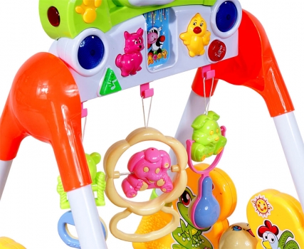 Stojak Fitness 668-98 ML. Zabawi dziecko trzema zawieszonymi grzechotkami, oraz dwoma światełkami migajacymi podczas odtwarzania melodyjek i odgłosów zwierząt. Waga stojaka: 2,60 Waga kartonu: 2,80 Wymiary: dł. 67,5 x szer. 49 x wys. 10 (cm) Funkcje: Trzy wiszace grzechotki Dwa światełka Dwa odgłosy zwierząt Dwie rytmiczne melodie Przycisk z melodyjką w nosku zabawki Dwie obrotowe piłki grzechotki w podstawie Dla najmłodszych dzieci 0+ |