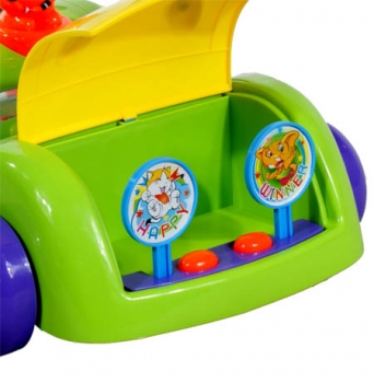 Wózek - pchacz ARTI A209-2 Duck & Rabbit Music, to edukacyjna zabawka otwierająca przed Twoim dzieckiem świat dźwieków kolorów i kształtów, wykonany z bezpiecznych materiałów najwyzszej jakości. FUNKCJE: - otwierana przednia maska - 2 zabawki pod maską - trykocząca kierownica - 1 melodyjka - świecący prędkościomierz - zabawki ruszające się podczas jazdy - zabezpieczenie przed wywrotką - wygodny prowadnik do pchania - baterie w zestawie WYMIARY: szer 35cm X dłu 42cm X wys 44cm Dla dzieci od 12 miesiąca |