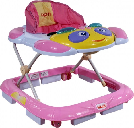Walker ARTI Beetle 10F is height adjustable suspension that allows easily adjust the height for the child. Walker is equipped with flashing lights, the music box, and silicone to protect against collision blocking an obstacle, or sliding down the stair. Made from the highest quality materials for maximum comfort and safety of your child. For children with a maximum weight of 12kg. Functions - Swivel front wheels - Adjustable height - Textile comfortable seat - Buttons with tunes on your desktop - Silicone block underneath to protect against: collision on the obstacle (eg block) running off down the stairs. |