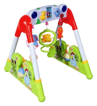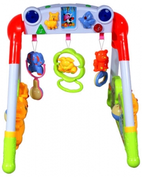 Stand Fitness 668-110. Great develops manual dexterity and imagination of a child, entertaining them with three suspended rattles, rattles and two balls placed in the base. Stand Weight: 2.20 Carton weight: 2.35 Dimensions: L 55 x W 49 x H 9.5 (cm) Functions Three hanging rattles Two rotating ball rattles in the base Raised images of animals in the base For the youngest children 0 + |